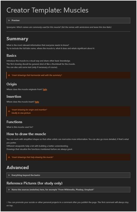 Help building the AnatomyArchive, so that one day it's the ultimate "Reference Book" (with the unique twist, that its written by many different people). Get your name out there. Connect with others that want to improve. Help other artists through your studies.